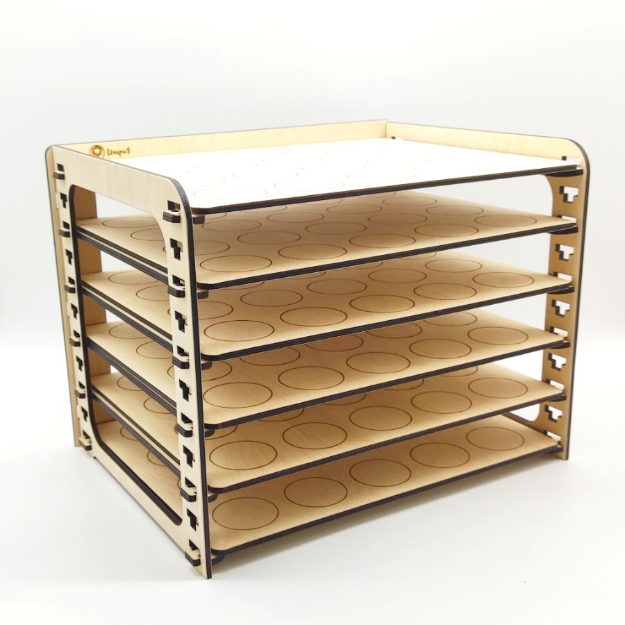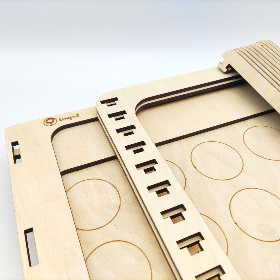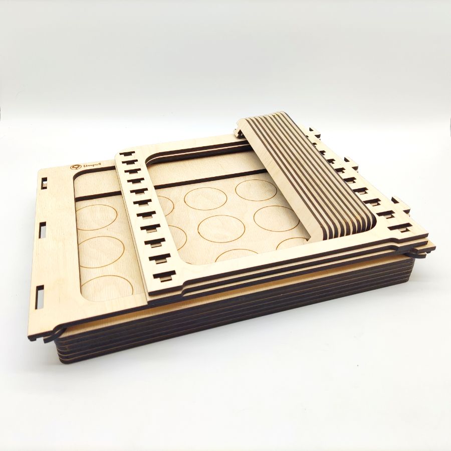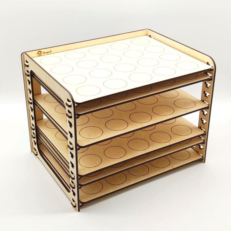 Материал изделия - фанера ФК 2Ш 2/2 толщиной 6 мм. Перед использованием оборачивайте полки пищевой плёнкой или пергаментом.